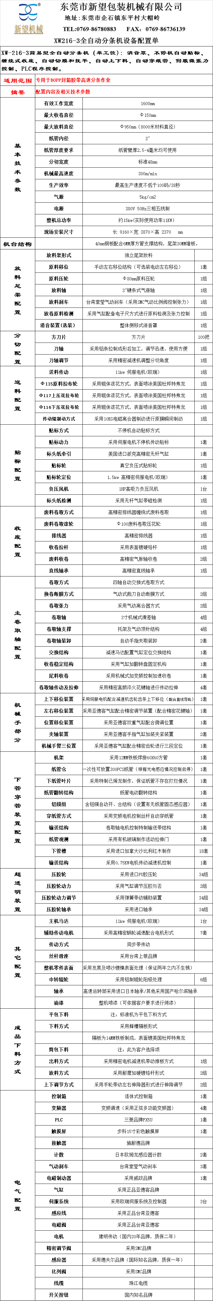 XW-216-3簡易型全自動分條(單工位)關鍵技術詞:消音罩、不停機自動貼標、纏繞式收廢、自動切膜和撫平、自動上下料、自動穿紙管、伺服微張力控制、PLC程序控制。